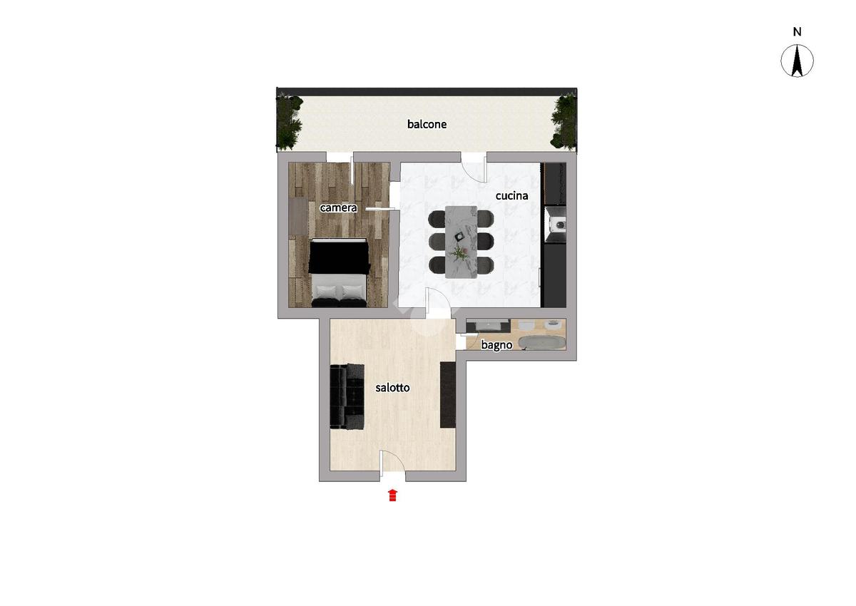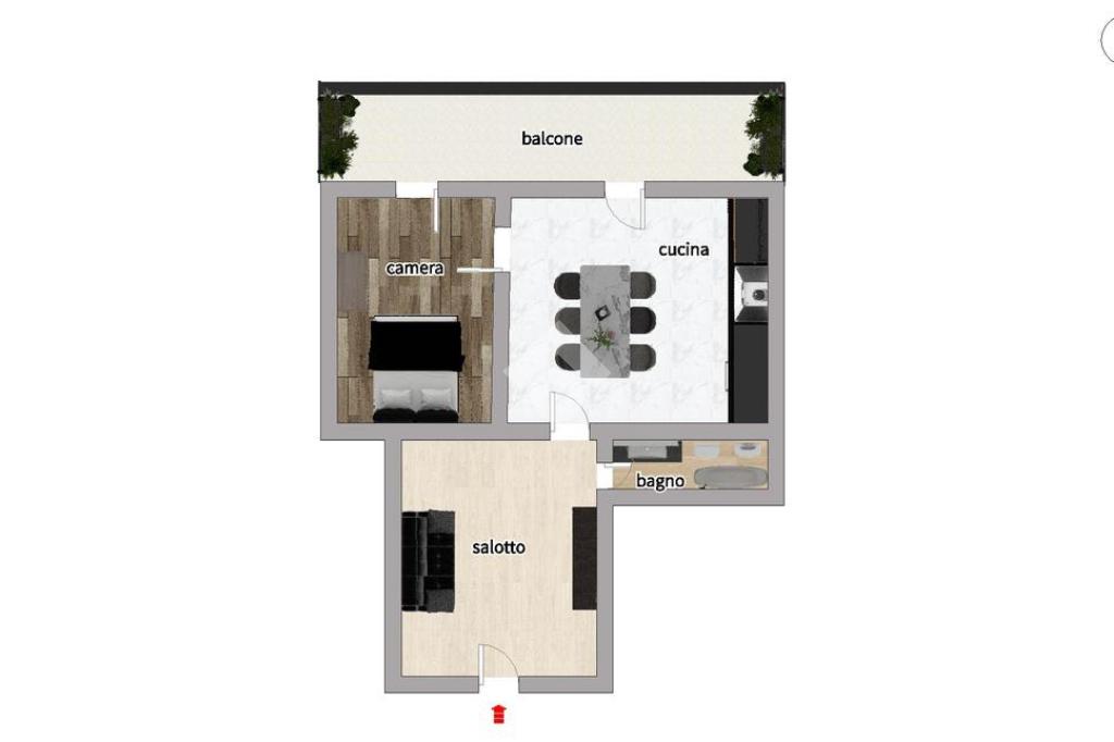 Il cespite è composto nel seguente modo: Ingresso in disimpegno,bagno, cucina abitabile, camera da letto e BALCONE A TERRAZZINO.